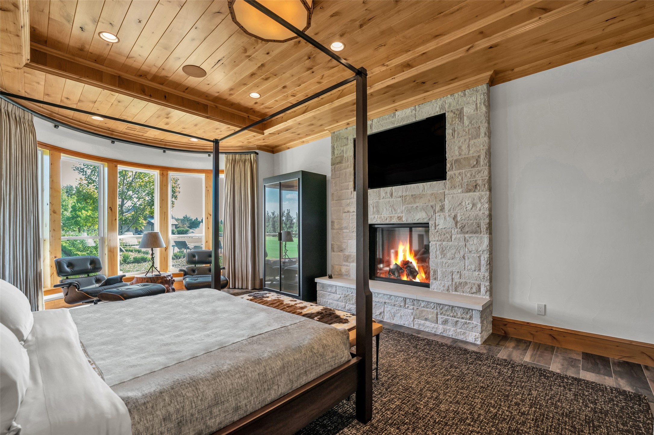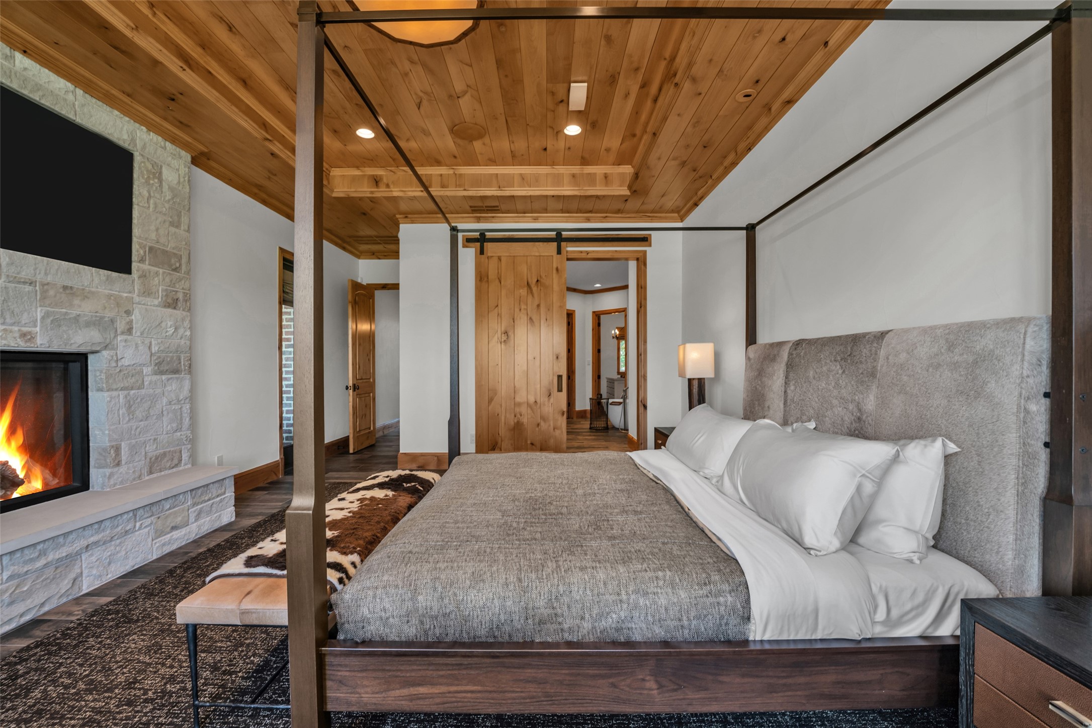 Bath, Great Room, Masonry, Primary Bedroom, Raised Hearth