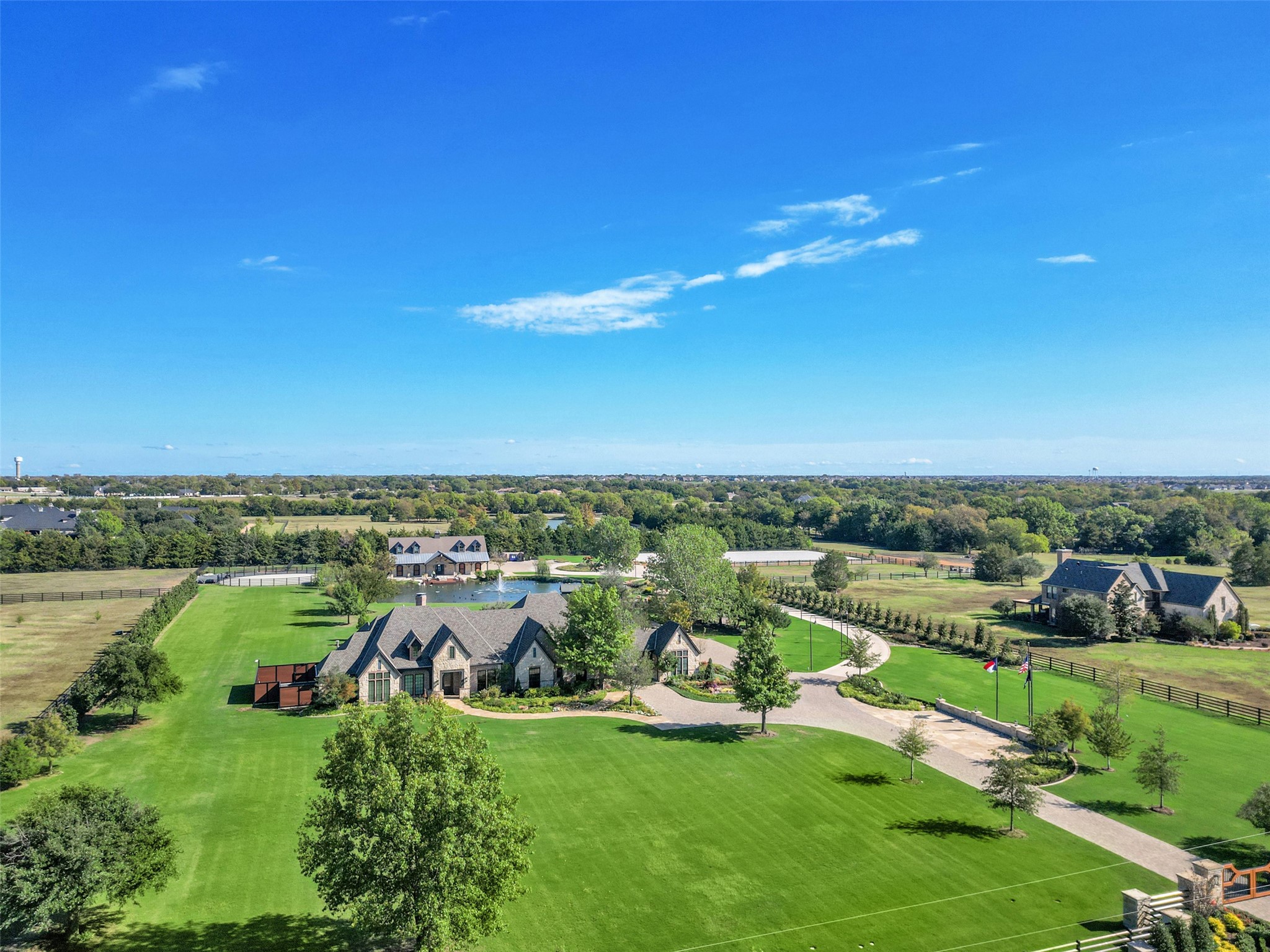 Minutes from downtown Dallas! Rick Shipley Custom Home. This stunning estate sits on 13.432 acres. Beautifully renovated w every detail imaginable. Stunning views of the grounds from entry & great room. Unlike anything on the market! Chef's kitchen with Quartzite counters, Wolf & Subzero appliances. Well-appointed primary suite w views, fireplace, true spa bath & custom closet. Lg flex room, laundry & guest suites complete the main level. Second level offers a lg game room w views, wet bar, full bath, & separate media room that's perfect for entertaining or guest area. Stroll the spectacular grounds & enjoy the covered patio w outdoor grill, pool & spa w sundeck, large private pond, dressage arena, & 6 paddocks. The action-packed barn is for the equestrian at heart! 5 stalls, wash station, office flex space, tack room & half bath. Additional 1,100 sf guest quarters w kitchen, living, bedroom & full bath. Grounds irrigated from a well. Short distance to Lake Ray Hubbard.