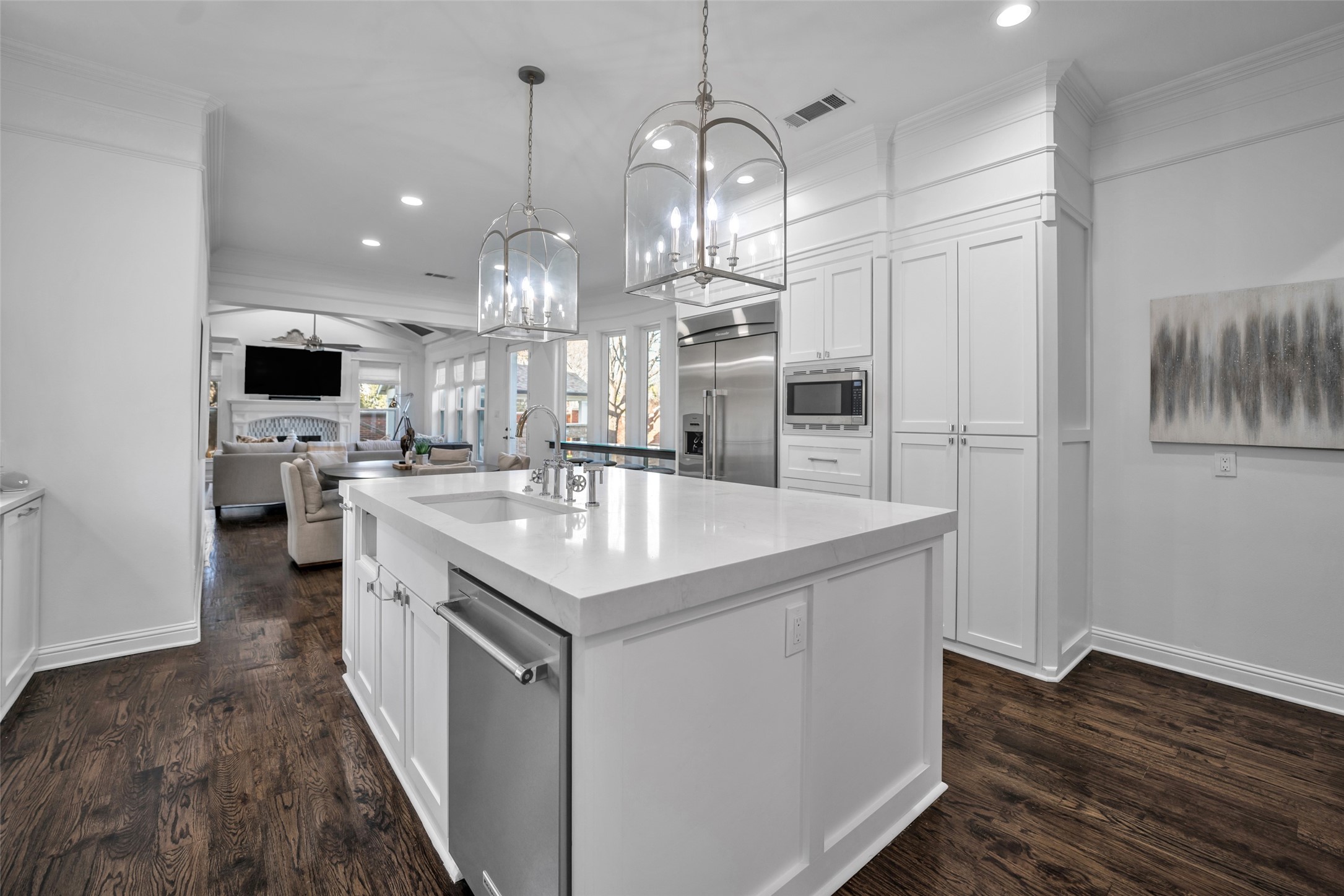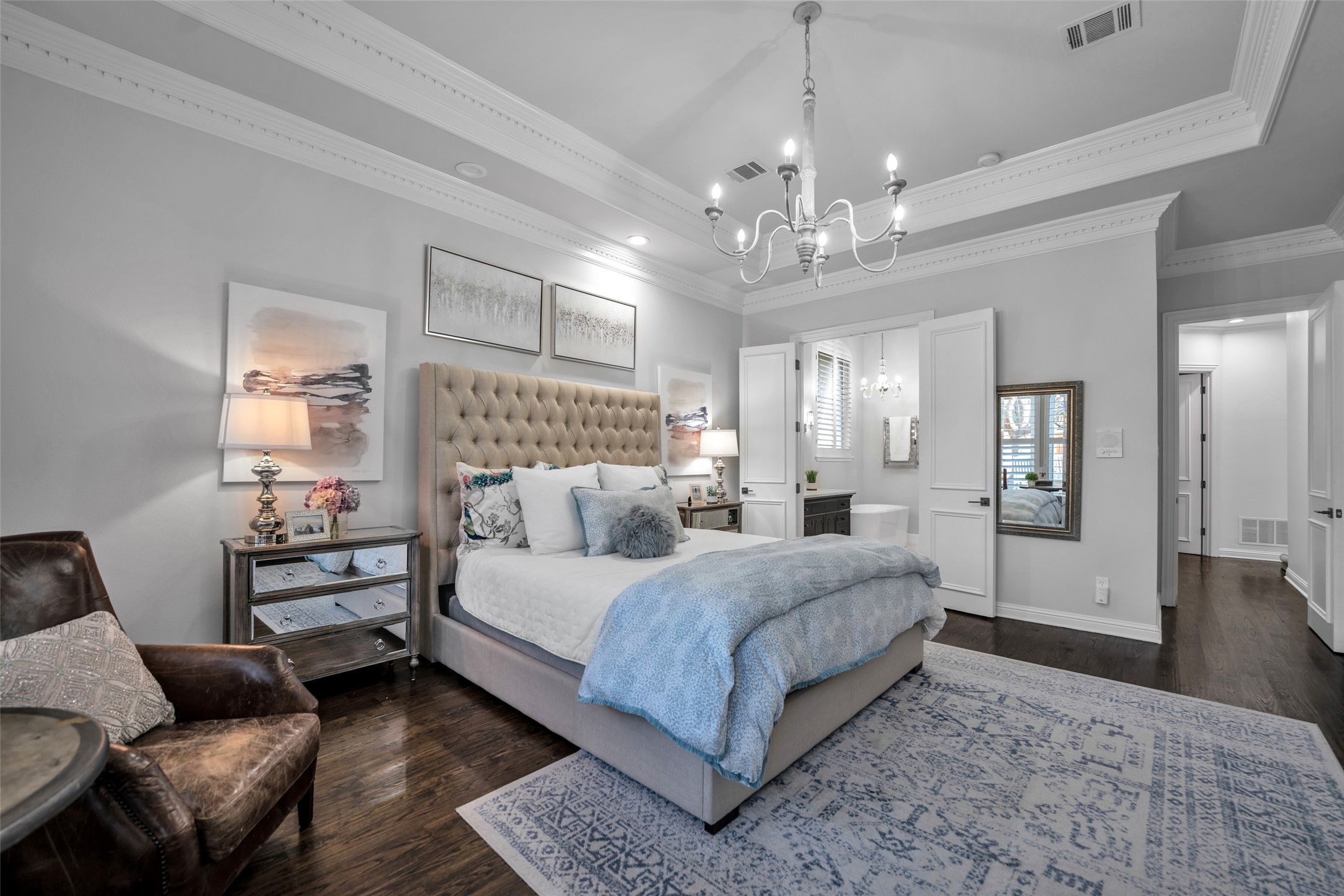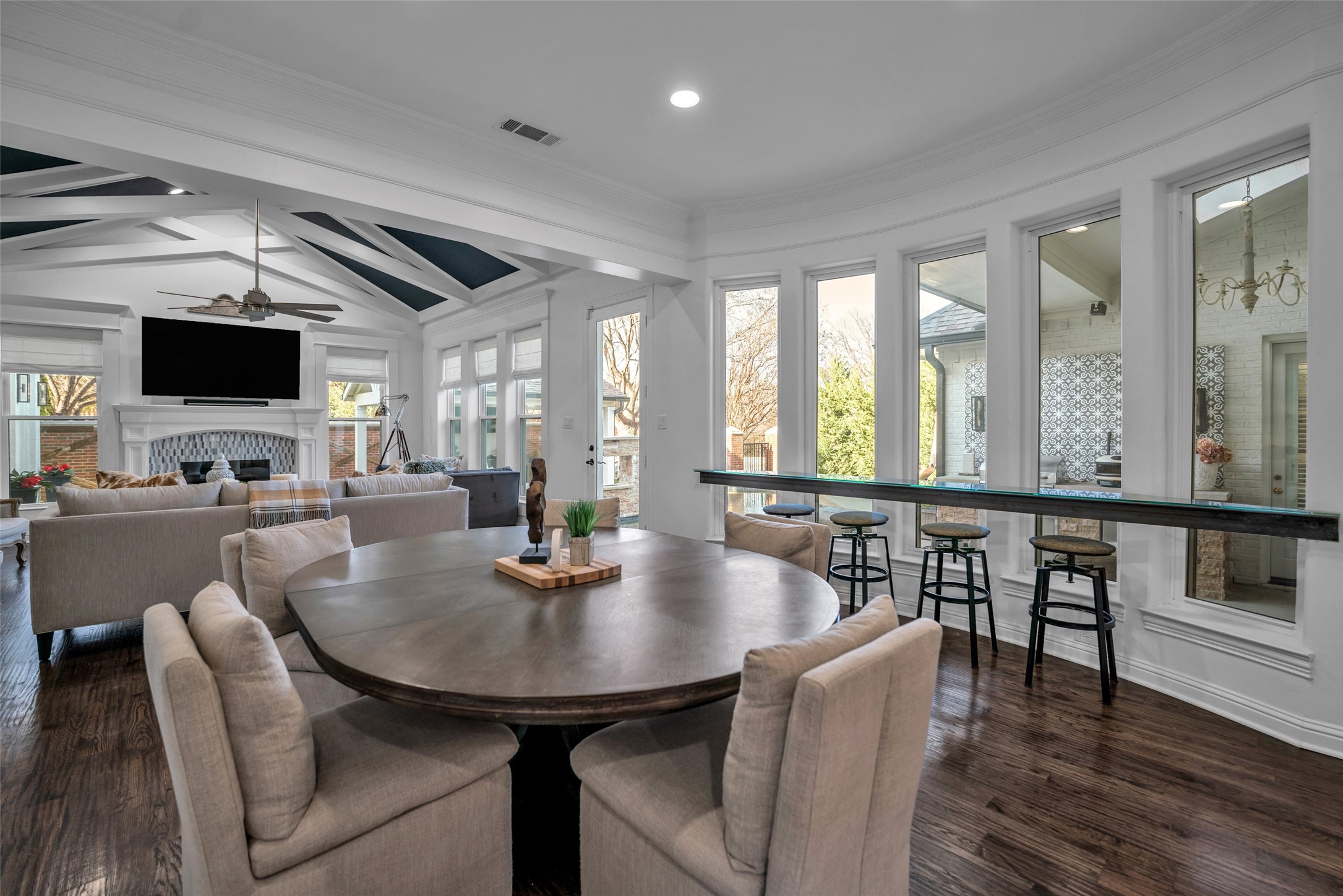 Located in the prestigious gated community of Starwood, this fully remodeled home sits on a beautifully treed .30-acre corner lot with exceptional curb appeal. Spanning over 5,200 square feet, the residence showcases new wide-plank hardwood floors, accent beams, trending paint, and updated lighting throughout. The stunning chef's kitchen features quartz countertops, ceiling-height cabinetry, and a well-appointed butler's pantry with wine and coffee bar, dual beverage refrigerators, and ice maker -- ideal for everyday living and entertaining. The private owner's suite offers serene pool views, direct backyard access, and a spa-inspired bath with freestanding tub and frameless shower. Upstairs, you'll find spacious secondary bedrooms and a game room with convenient back staircase access. Don't miss the spectacular two-story entertainment addition complete with first level media room, sunroom, loft, and dry bar -- designed for unforgettable gatherings. Enjoy a resort-style backyard with sparkling pool, waterfall feature, cabana, built-in grill, turf, and mosquito misting system. Additional highlights include a three-car garage with EV outlet. Zoned to award-winning Frisco ISD and located minutes from Legacy West, The Star, PGA headquarters, and DFW Airport.