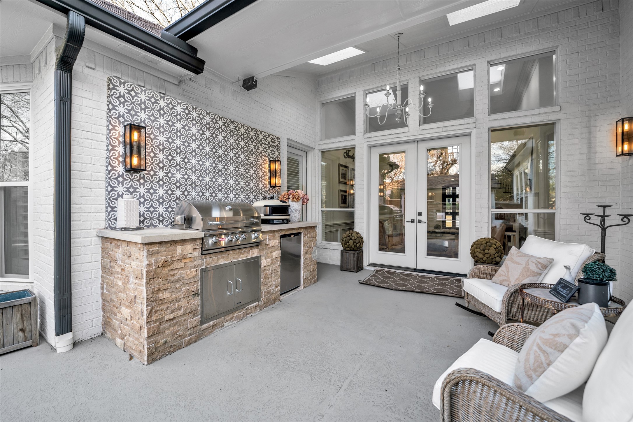 Located in the prestigious gated community of Starwood, this fully remodeled home sits on a beautifully treed .30-acre corner lot with exceptional curb appeal. Spanning over 5,200 square feet, the residence showcases new wide-plank hardwood floors, accent beams, trending paint, and updated lighting throughout. The stunning chef's kitchen features quartz countertops, ceiling-height cabinetry, and a well-appointed butler's pantry with wine and coffee bar, dual beverage refrigerators, and ice maker -- ideal for everyday living and entertaining. The private owner's suite offers serene pool views, direct backyard access, and a spa-inspired bath with freestanding tub and frameless shower. Upstairs, you'll find spacious secondary bedrooms and a game room with convenient back staircase access. Don't miss the spectacular two-story entertainment addition complete with first level media room, sunroom, loft, and dry bar -- designed for unforgettable gatherings. Enjoy a resort-style backyard with sparkling pool, waterfall feature, cabana, built-in grill, turf, and mosquito misting system. Additional highlights include a three-car garage with EV outlet. Zoned to award-winning Frisco ISD and located minutes from Legacy West, The Star, PGA headquarters, and DFW Airport. *Back on the Market - Buyer got cold feet days before closing*