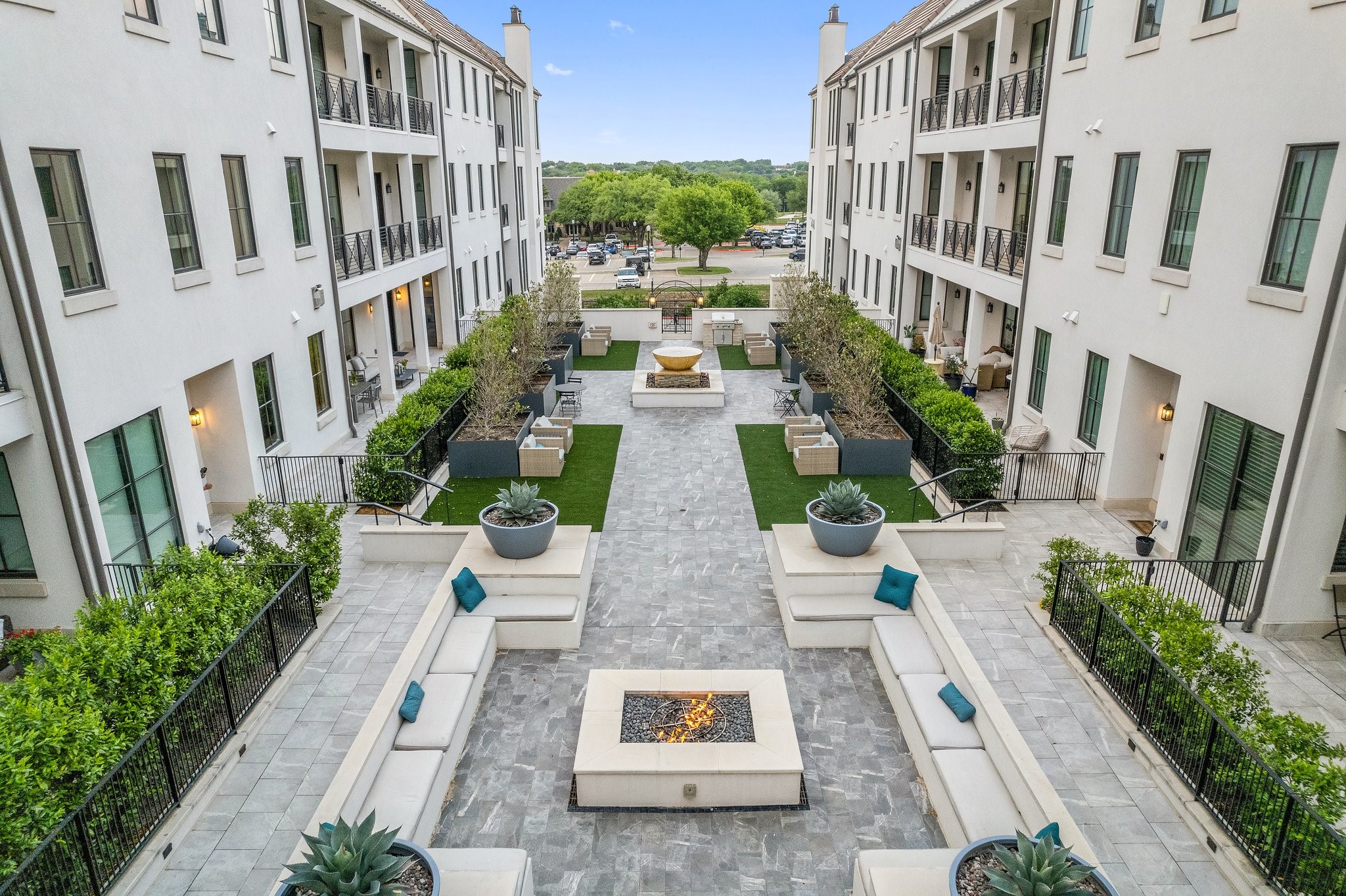 Luxury 3rd-floor corner condominium offering a true lock-and-leave lifestyle.Open-concept floor plan and a wall of windows that flood the space with natural light. Enjoy two private rooftop patios--perfect for entertaining or relaxing. A dedicated office provides ideal work-from-home space and can easily function as a flex room. The chef's kitchen is equipped with stainless steel appliances, a Wolf 6-burner gas cooktop, built-in Sub-Zero refrigerator, and beverage fridge. The expansive primary suite offers exceptional privacy and a spa-inspired ensuite bath with freestanding soaking tub, separate shower, dual vanities, and a Texas-sized walk-in closet. The guest bedroom includes its own ensuite bath and can easily function as a second primary suite. Community amenities include pool, clubhouse, putting green, dog park, fire pit, and BBQ grills. Residents also enjoy access to the Westin Golf Resort's fitness center and pool. Two assigned underground parking spaces included (164 & 165). Conveniently located near the Stonebriar Country Club, Legacy West, The Star, Grandscape, PGA District, DNT and 121.