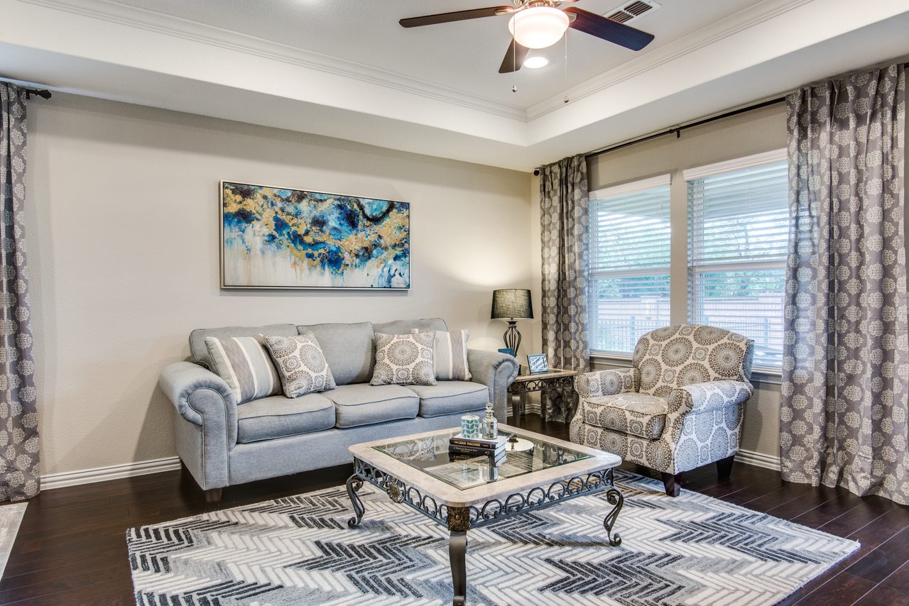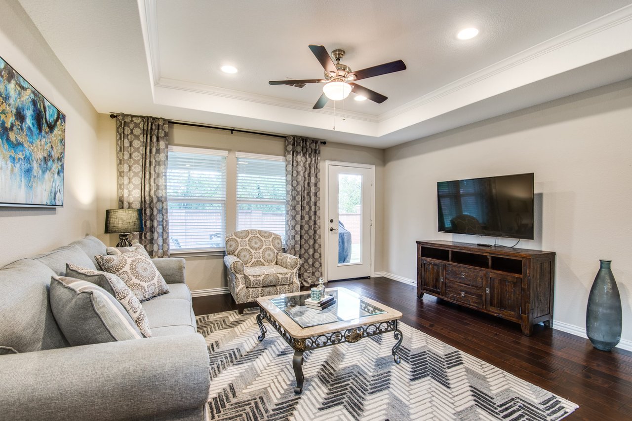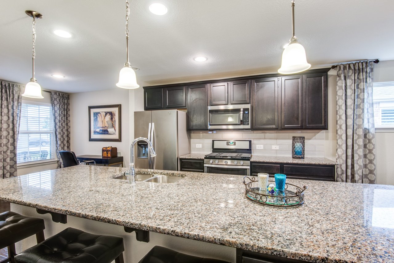 Meticulously maintained. This villa offers modern details, wide plank wood floors and a covered patio with grassy area. The family room is a wonderful space for entertaining. The cook’s kitchen is open for gatherings and offers a large island with granite counters, tons of storage and gas range. A flex space is perfect for desk or sitting area. The spacious private owner’s suite opens to bath with dual sinks, shower, and large walk-in closet. The guest bed is private and offers a full bath. Partially fenced yard! Enjoy all the amenities that Del Webb has to offer! Golf, workout, pools and much more. Convenient to shopping. A must see.